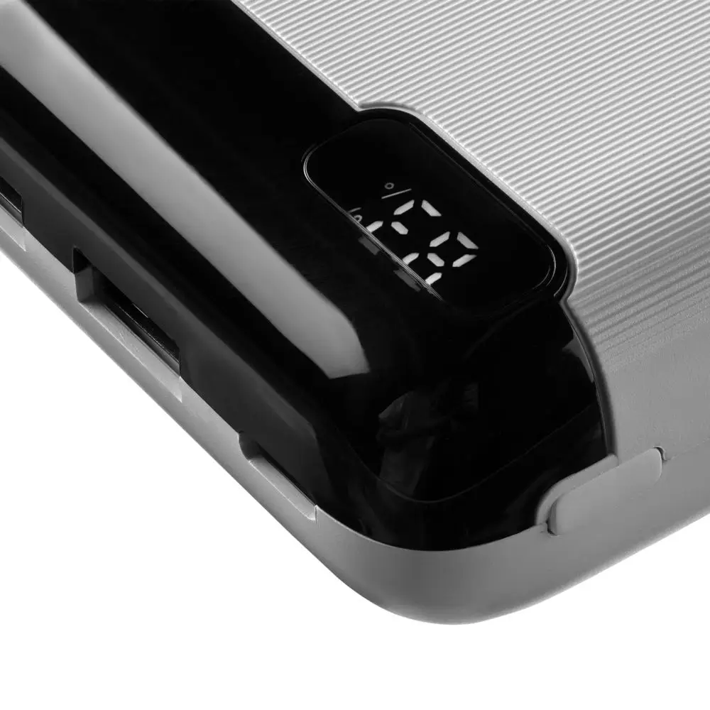 Аккумулятор со входными разъёмами Type-C и Micro USB, а также удобным индикатором заряда в процентах.