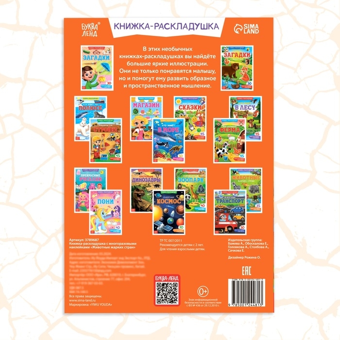 Книжка-раскладушка раскрывается как плакат, в ней нет переплёта, поэтому ребёнку с ней будет удобно заниматься.