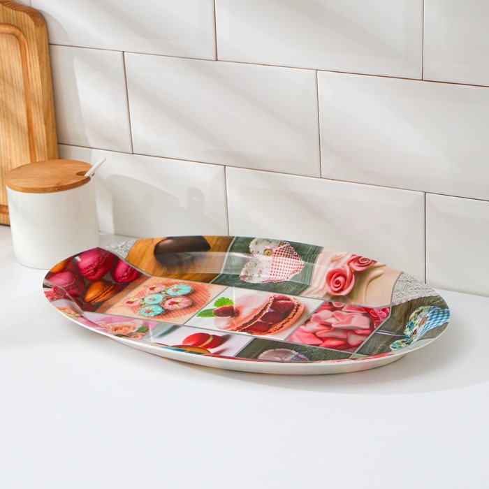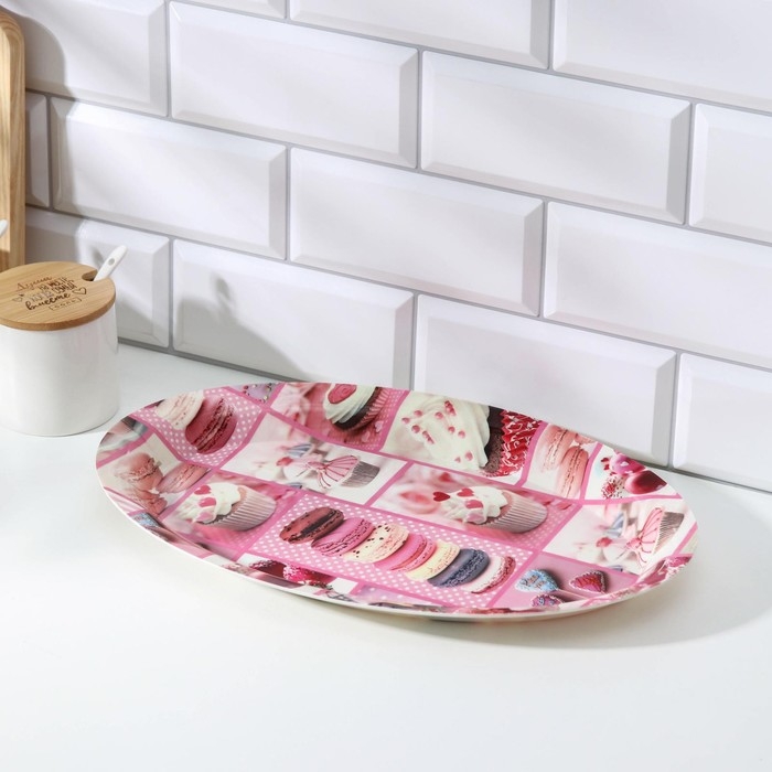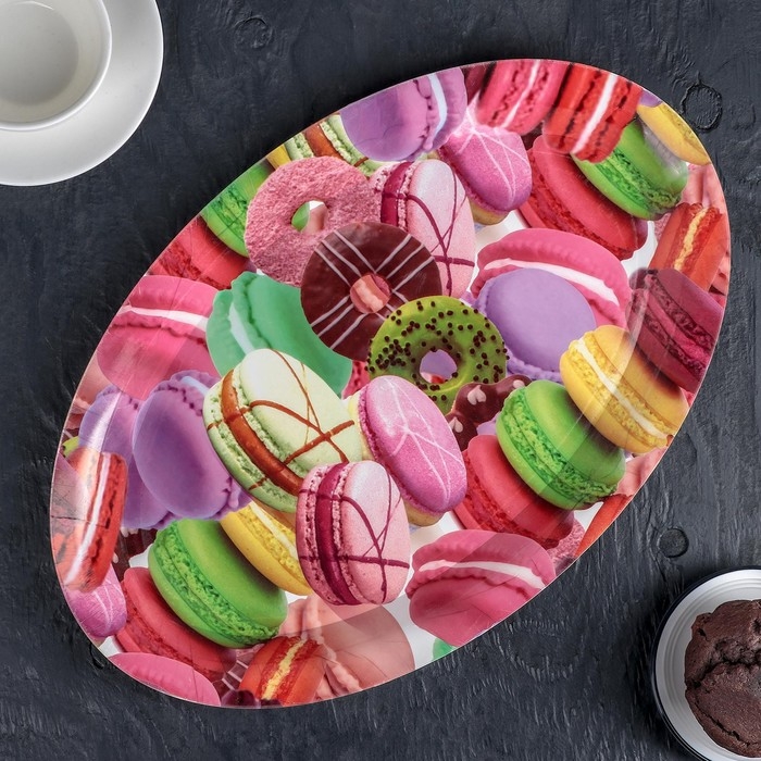 Поднос овальный Доляна «Макаруны», 37×24×3 см, цвет МИКС