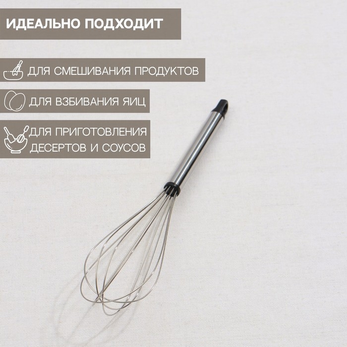 Венчик для взбивания Доляна «Помощник», 24×6 см, цвет серебристый