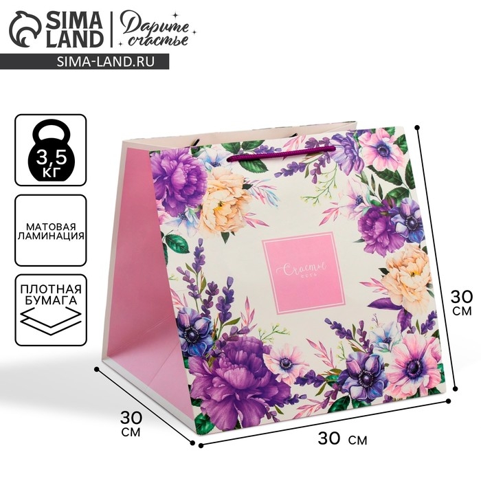 Квадратный пакет «Счастье есть», 30 х 30 х 30 см