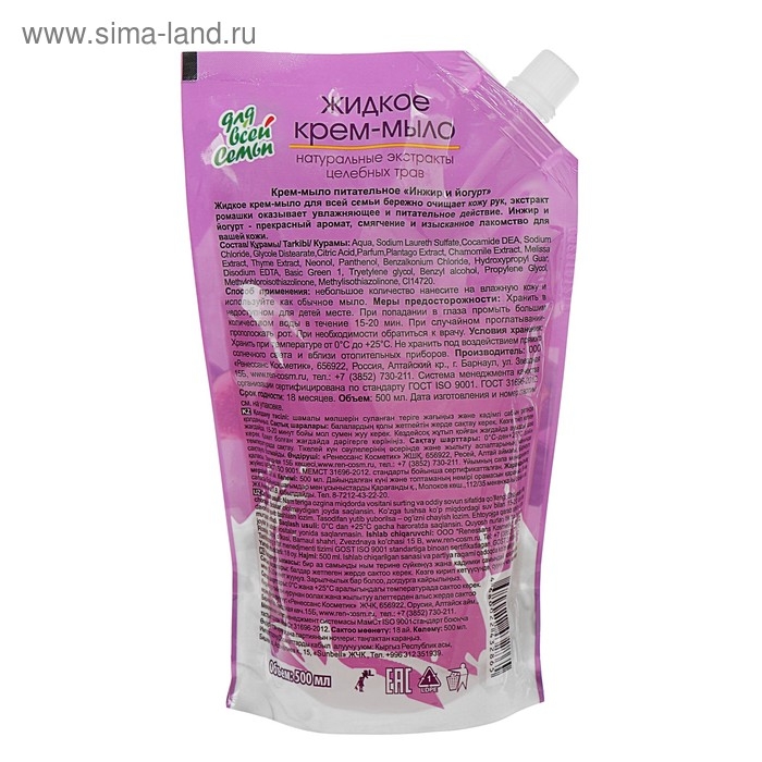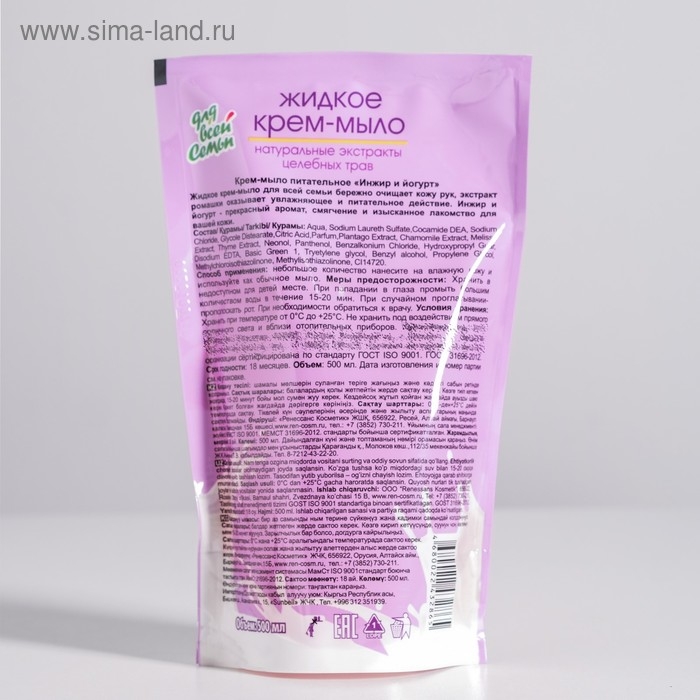 Жидкое крем-мыло «Для всей семьи» питательное Инжир и йогурт, 500 мл