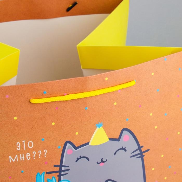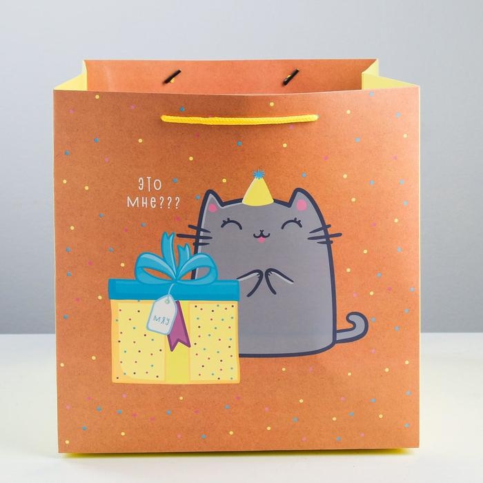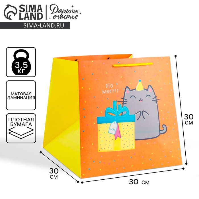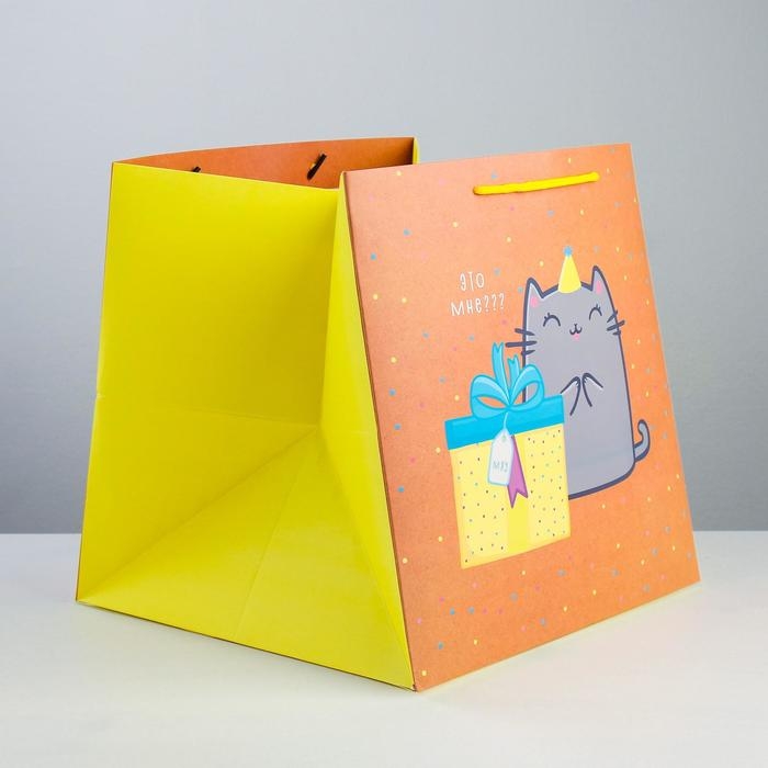 Пакет подарочный квадратный, упаковка, «Котик и тортик», 30 х 30 х 30 см