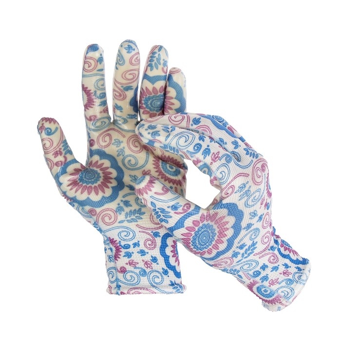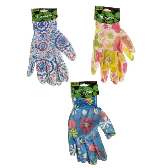 Перчатки садовые, нейлоновые, с нитриловым полуобливом, размер 8, цвет МИКС, Greengo