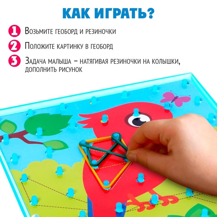 Геоборд — это простая и интересная игрушка. Она развивает логику, мышление, мелкую моторику рук.
