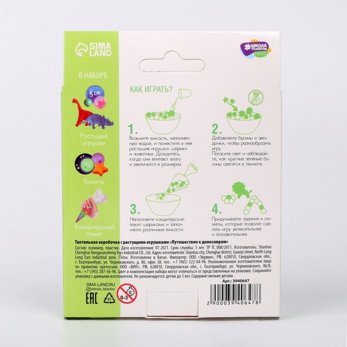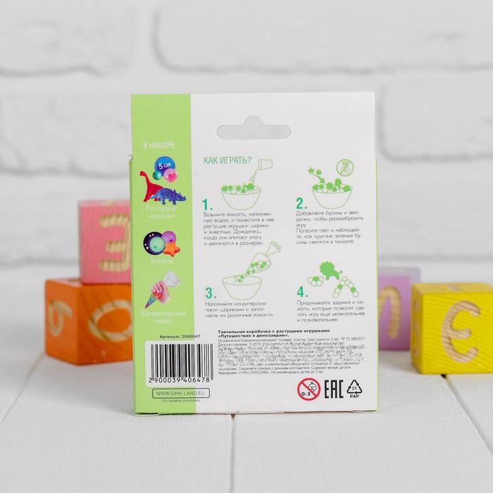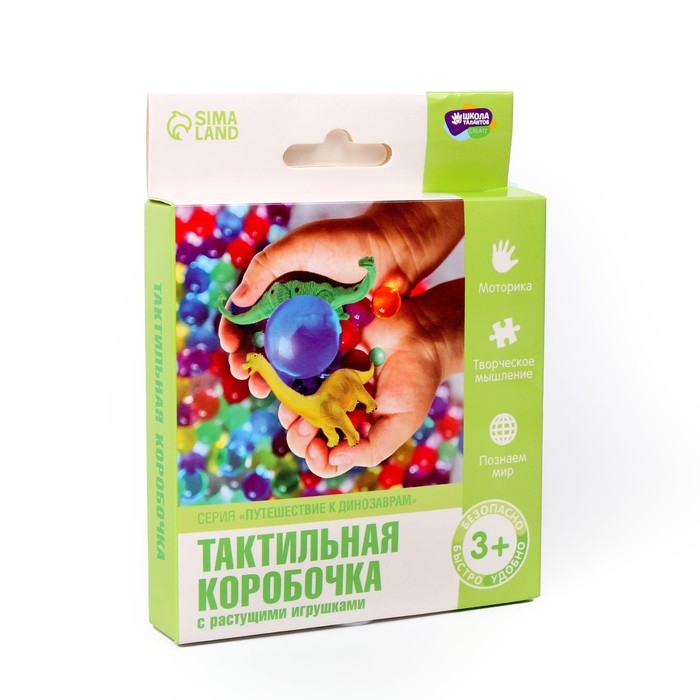 Тактильная коробочка «Путешествие к динозаврам», с растущими игрушками