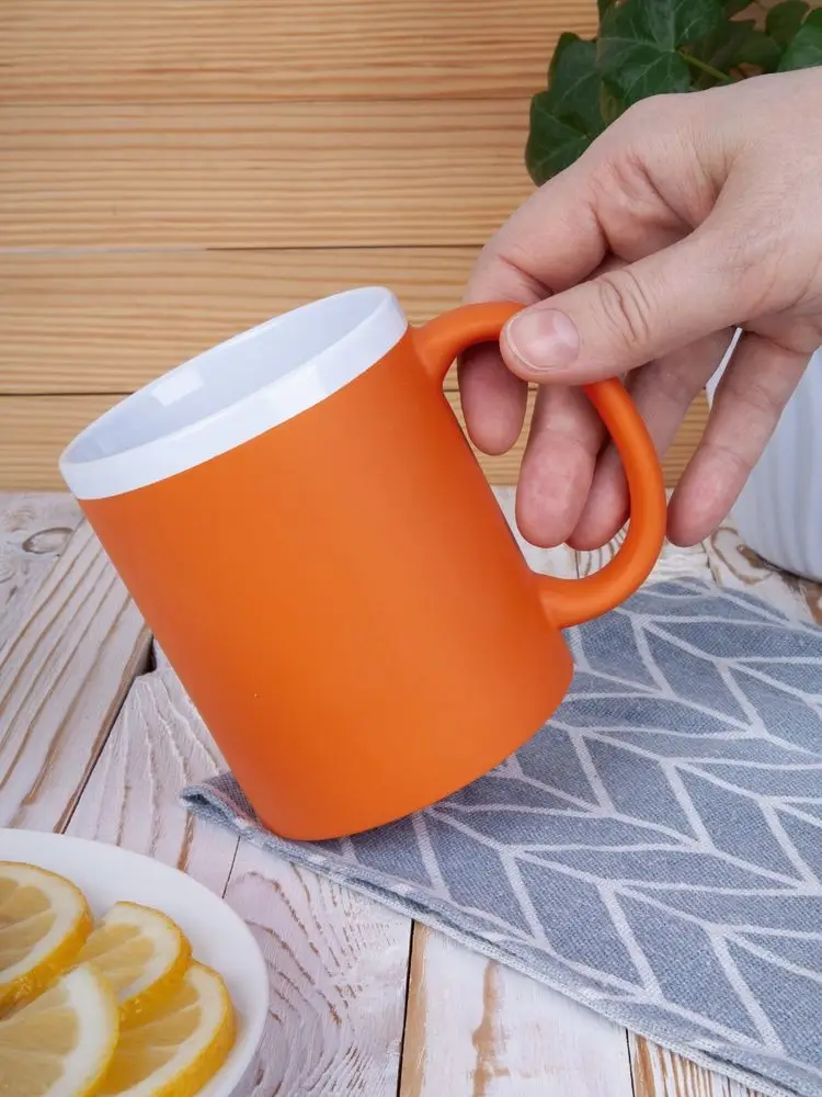Кружка классической формы StopSpot привлекает внимание своим дизайном и покрытием. Яркая матовая поверхность выигрышно контрастирует с глянцевым белым ободком — так кружка выглядит необычно, а еще меньше пачкается во время эксплуатации.