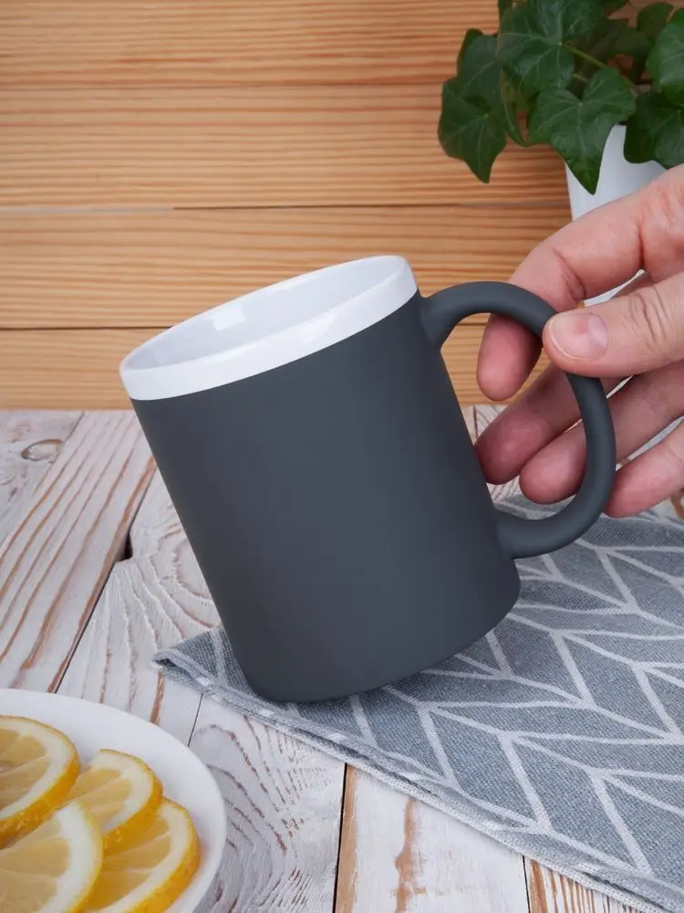 Кружка классической формы StopSpot привлекает внимание своим дизайном и покрытием. Яркая матовая поверхность выигрышно контрастирует с глянцевым белым ободком — так кружка выглядит необычно, а еще меньше пачкается во время эксплуатации.