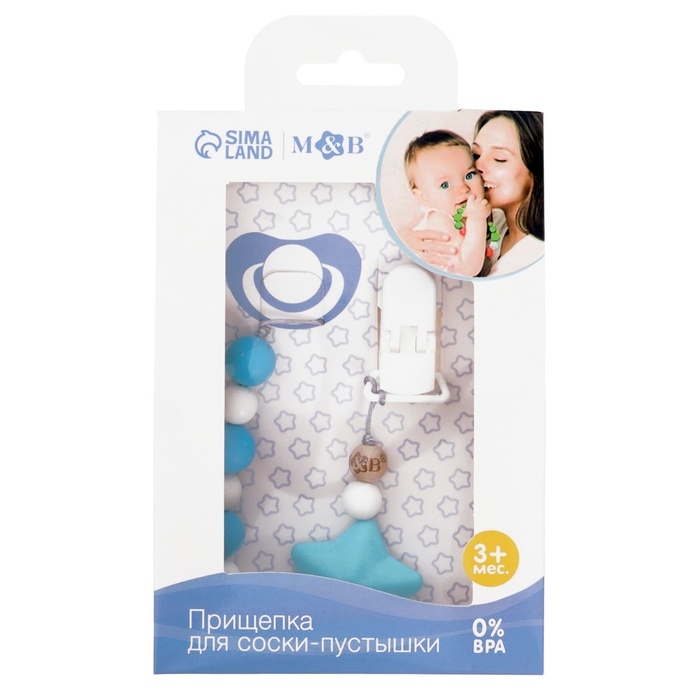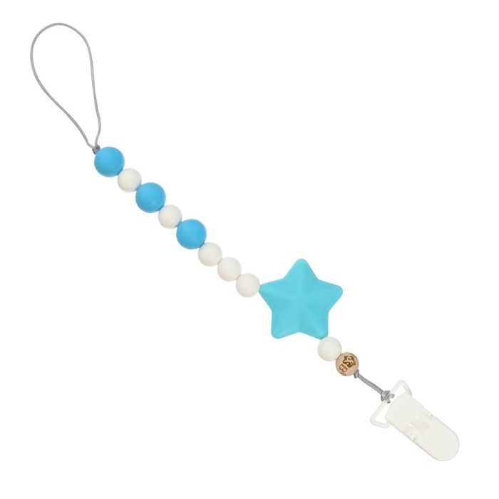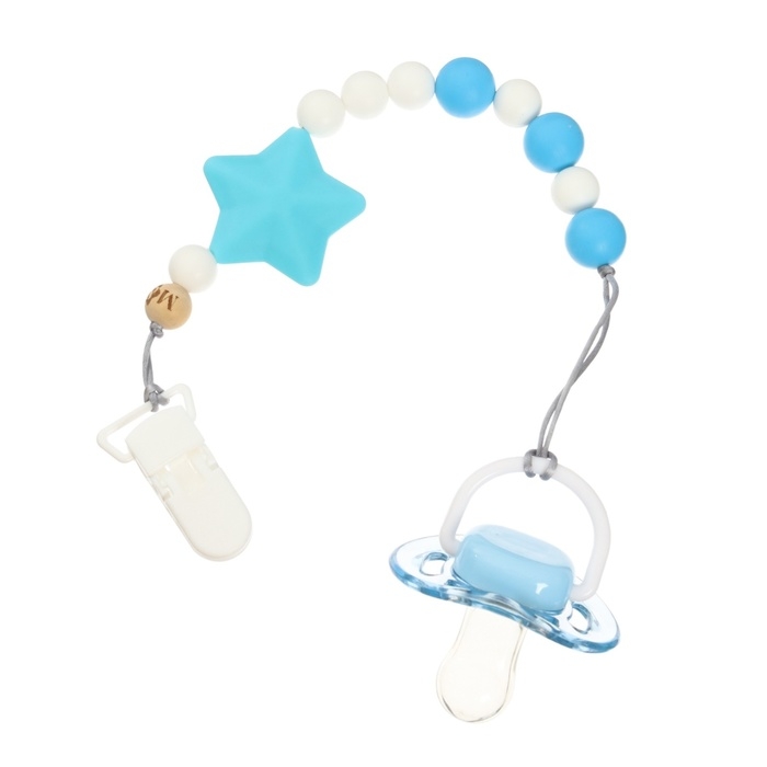 Держатель для пустышки деревянный, цвет бежевый/голубой, Mum&Baby