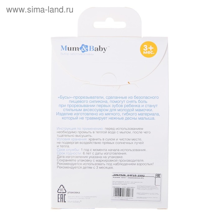 Товар изготовлен из прочного и безопасного материала (силикона) и рекомендован для использования детками с 3 месяцев.