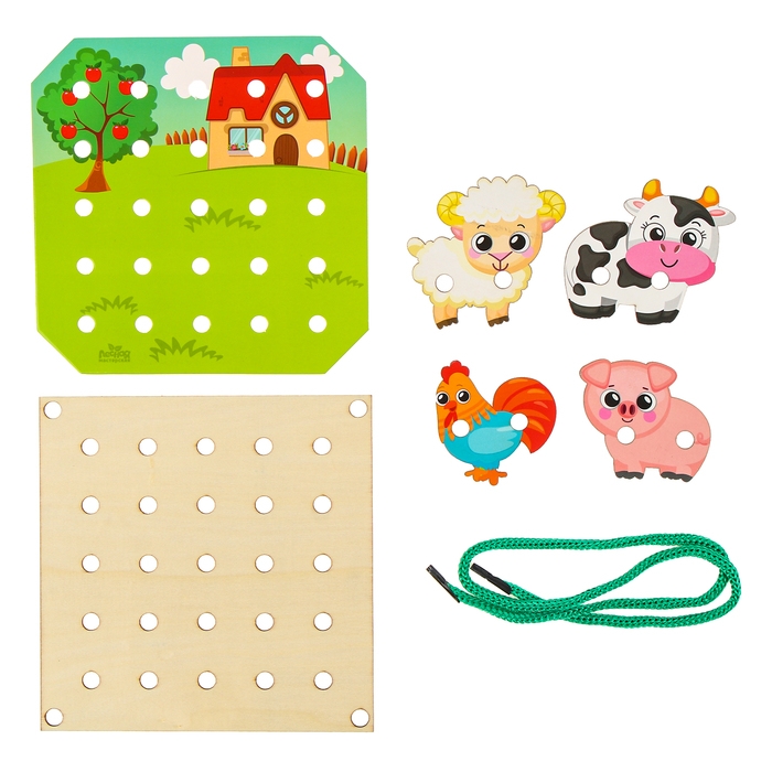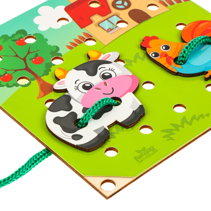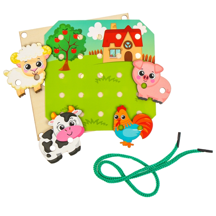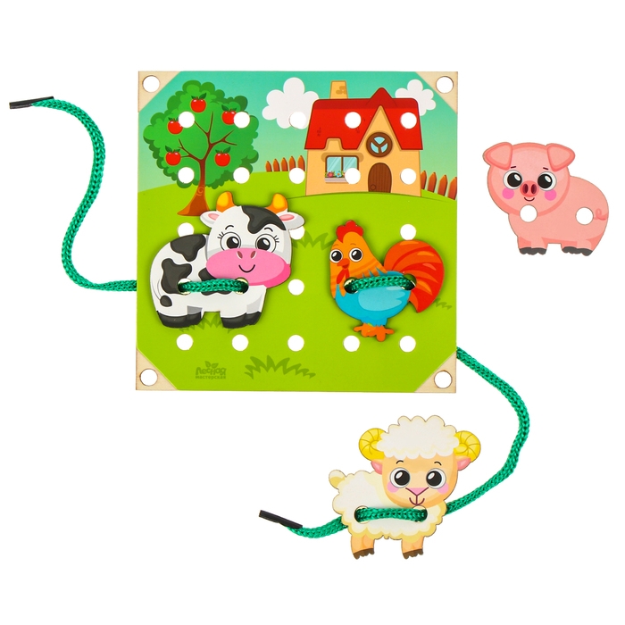 Деревянная игрушка-шнуровка «Ферма», 15×15 см