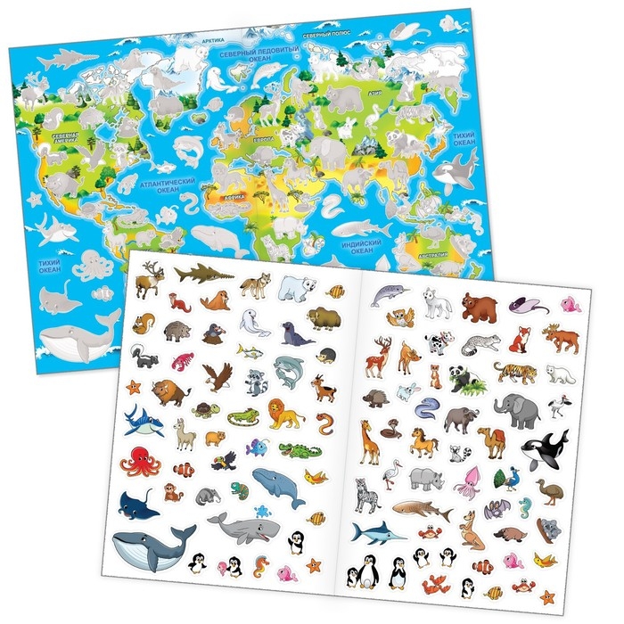 Наклейки многоразовые «Животные со всего света», формат А4