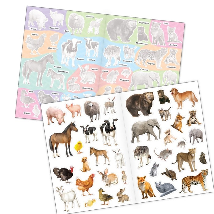 Многоразовые наклейки набор «Такие разные животные», А4, 2 шт.