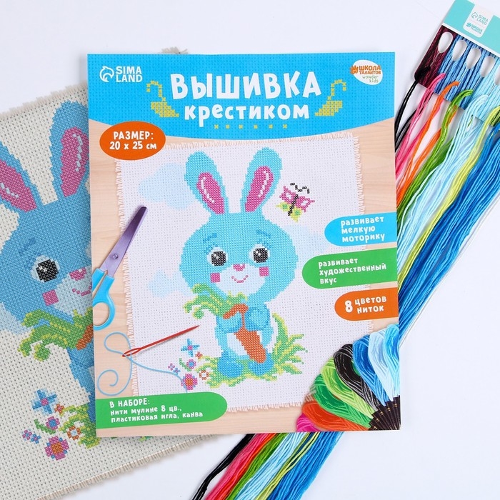 Вышивка с красивым рисунком и цветной схемой — то, что нужно малышу, чтобы освоить новое хобби!
