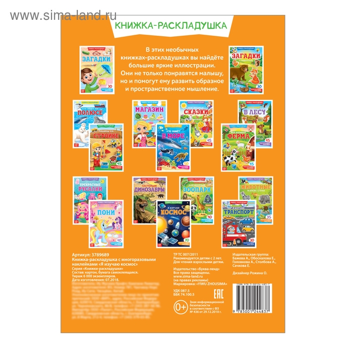 Книжка-раскладушка раскрывается как плакат, в ней нет переплёта, поэтому ребёнку с ней будет удобно заниматься.