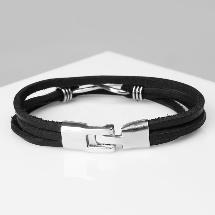 Браслет мужской «Гравитация» бесконечность, цвет чёрный с серебром, 23 см