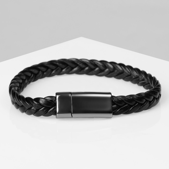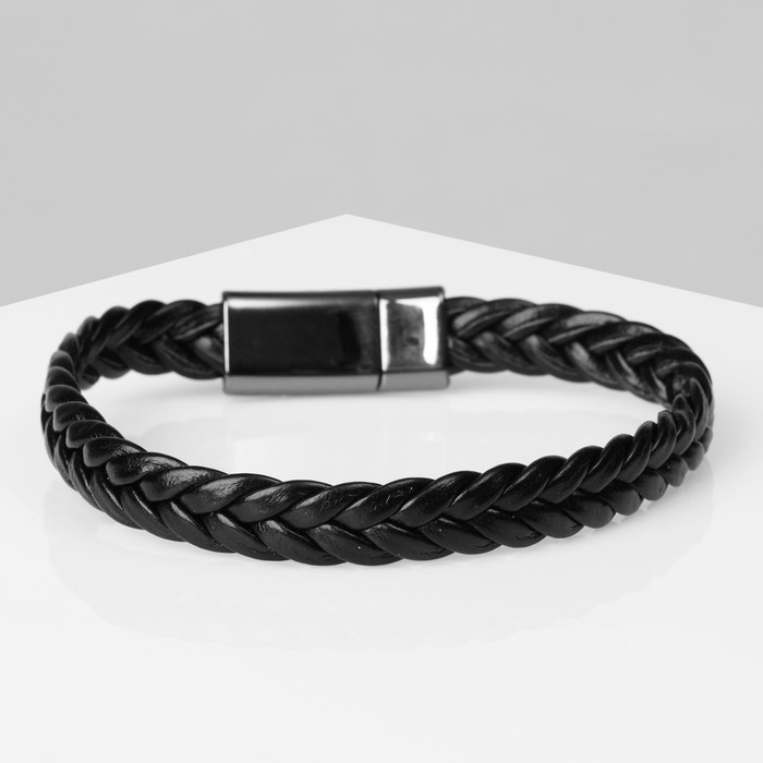 Браслет унисекс «Косичка» гладкая, цвет чёрный с серым металлом, 22 см