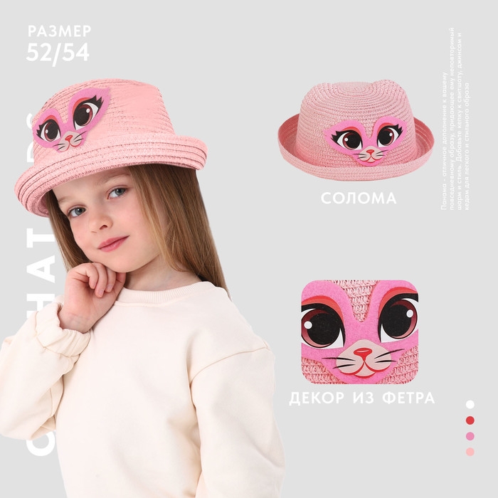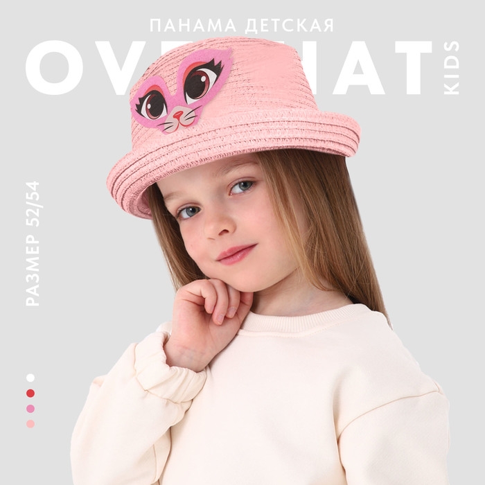 Панама детская для девочки «Киса», цвет розовый, р-р 49 - 50, 2-5 лет