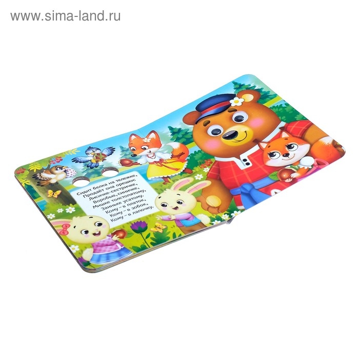 Книга сделана из плотного картона, поэтому прослужит долго. Каждый разворот имеет своего персонажа с забавными глазками, которые привлекут внимание малыша. Также внутри вы найдёте рассказы в стихотворной форме.