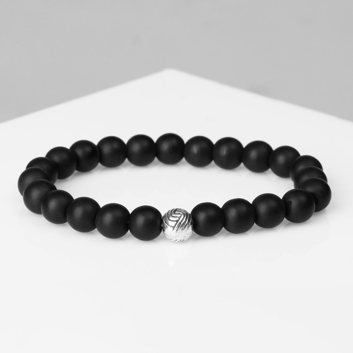 Браслет мужской «Гранд» матовые бусины, цвет чёрный с серебром, d=6 см
