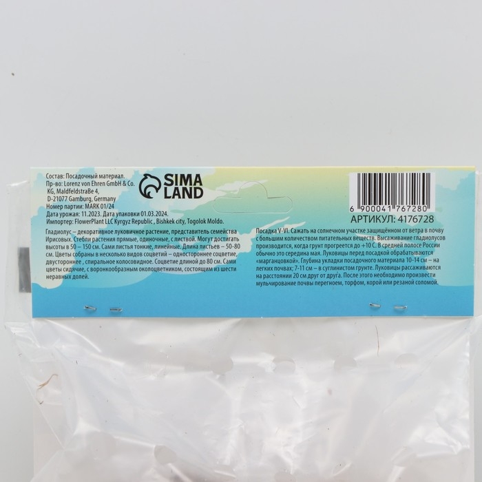 Гладиолус Низкорослый (мини) смесь сортов, луковица цветов в пакете с перфорацией, р-р 10/+ , 7 шт.