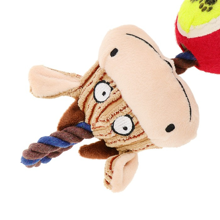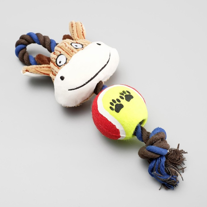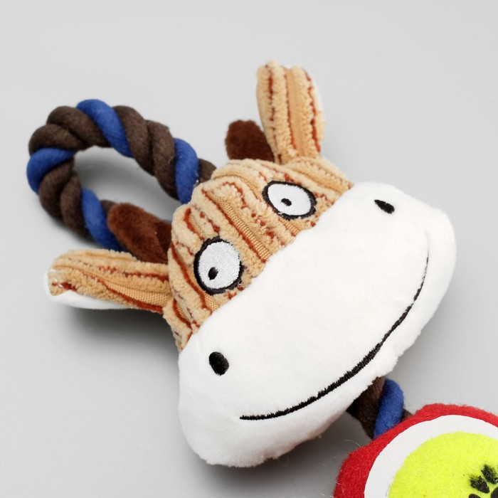 Игрушка для собак 3-в-1 "Корова": канатная, мягкая с пищалкой, войлочный мяч, 30 см