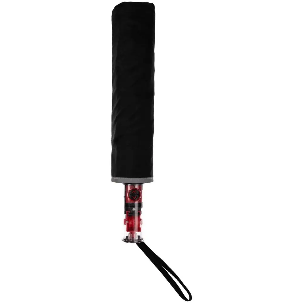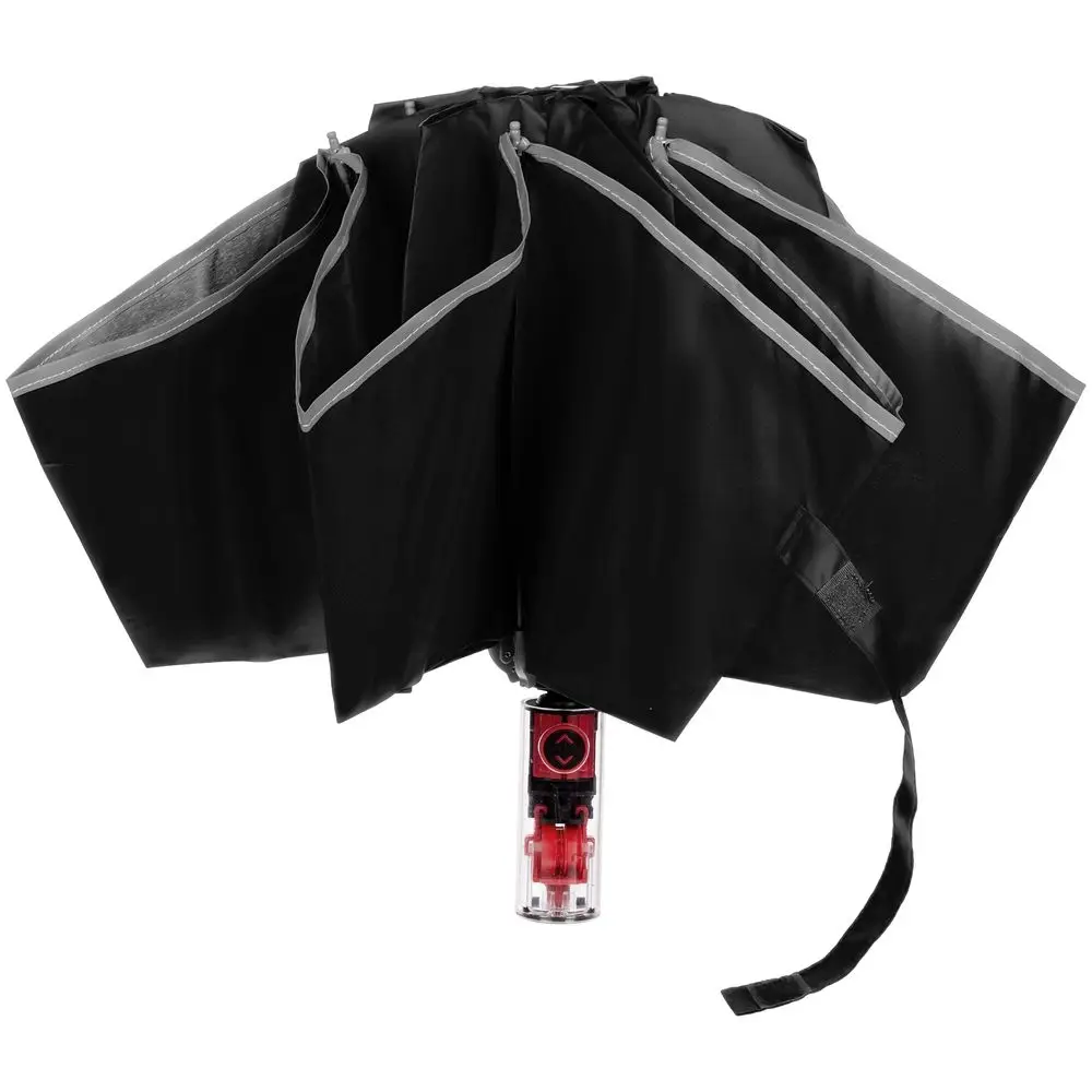 Складной зонт Futurum привлекает внимание оригинальным дизайном. Складываясь после дождя, он прячет мокрую поверхность в себя, а сухая остается снаружи.Светоотражающий кант и ручка из прозрачного пластика, не скрывающая ярких деталей внутри, добавляют внешнему виду зонта футуристичности.