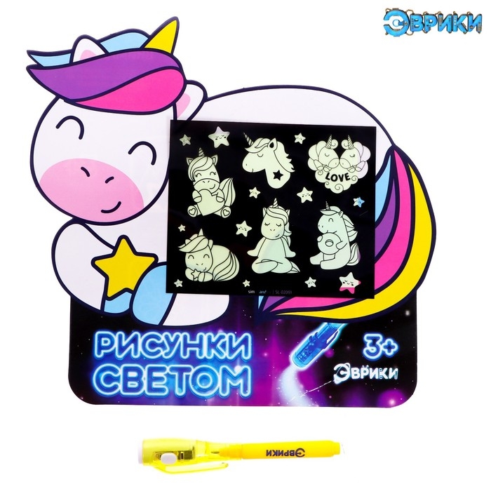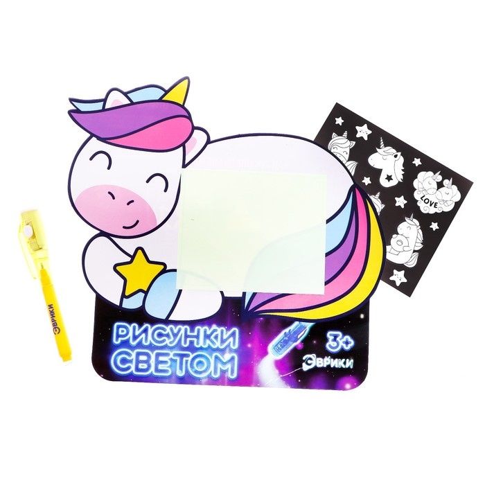 Набор для рисования светом «Единорог», А5, ручка с фонариком и невидимыми чернилами
