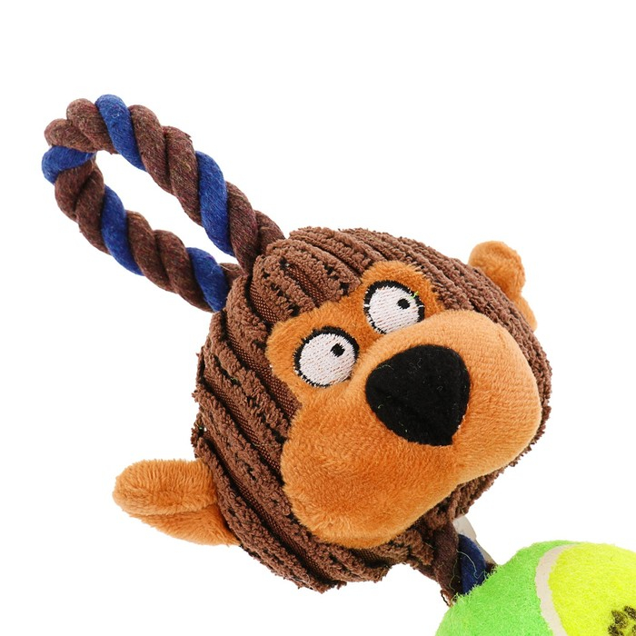 Игрушка для собак 3-в-1 "Обезьяна": канатная, мягкая с пищалкой, войлочный мяч, 30 см
