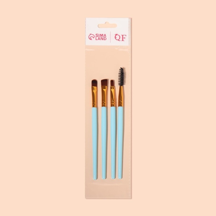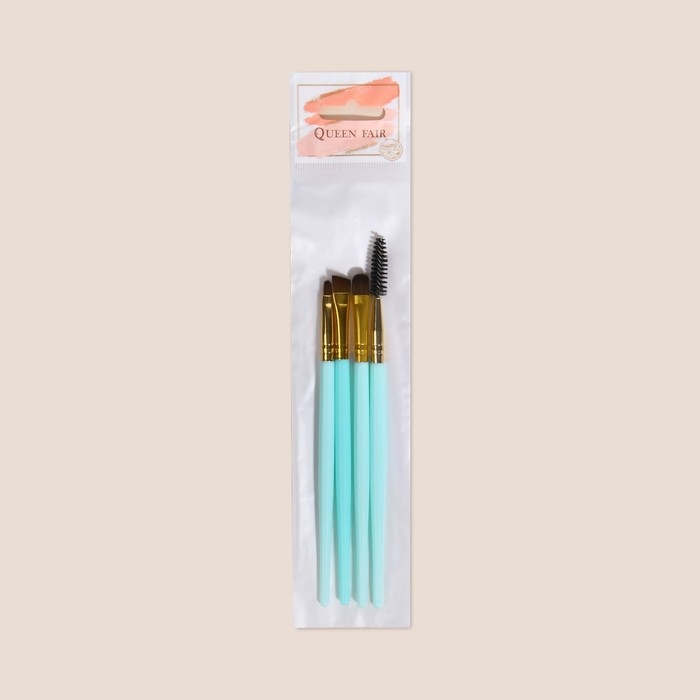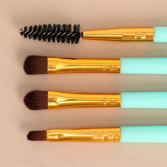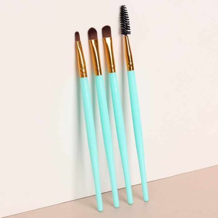 Набор кистей для макияжа, 4 предмета, цвет бирюзовый/золотистый