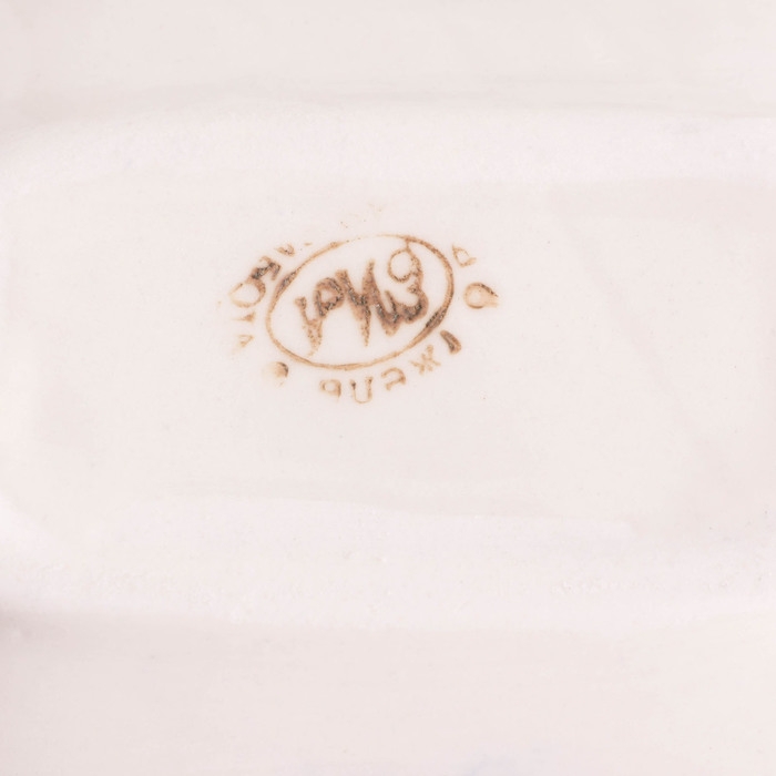 Каждое изделие выливается из фарфора, расписывается, обжигается и покрывается глазурью руками мастера.