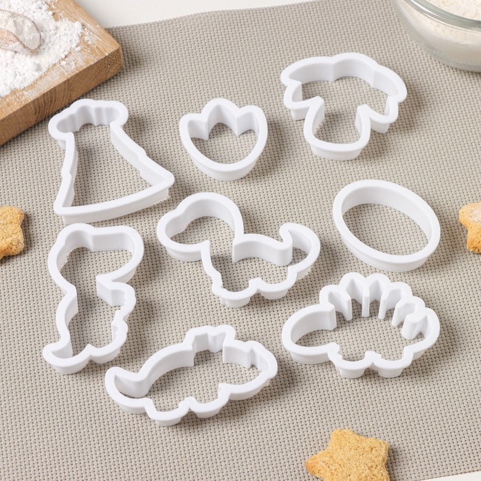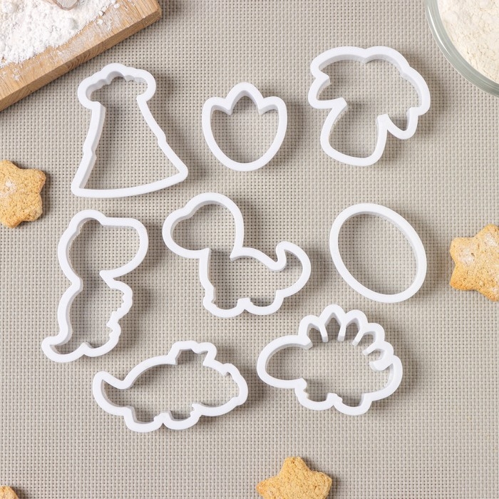 Набор форм для печенья Доляна «Хищные динозавры», 8 шт, цвет белый
