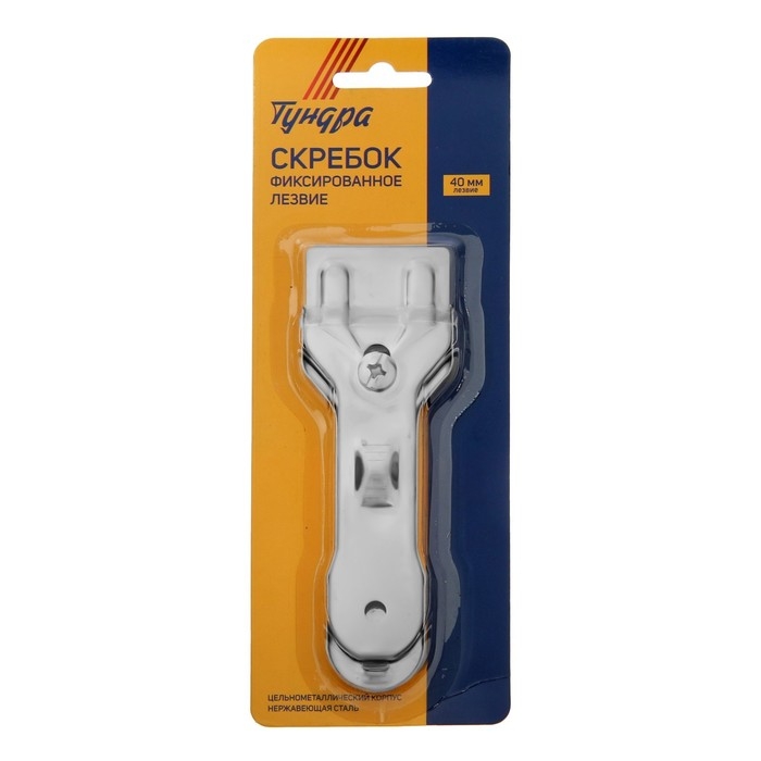 Скребок ТУНДРА, цельнометаллический корпус, нержавеющая сталь, фиксированное лезвие, 40 мм