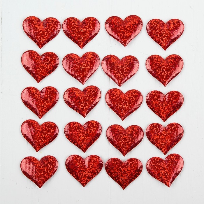 Сердечки декоративные, набор 20 шт., размер 1 шт: 3,5×2,5 см, цвет красный
