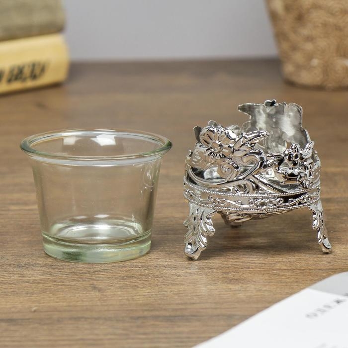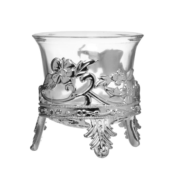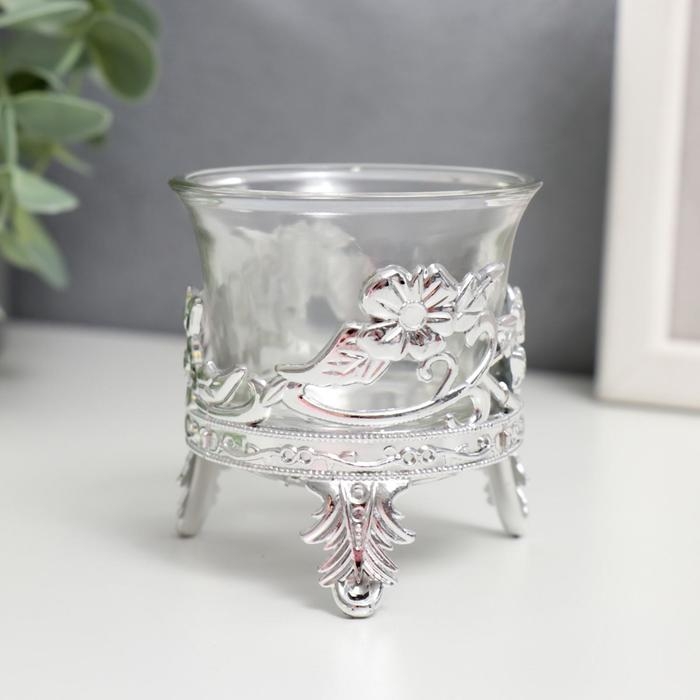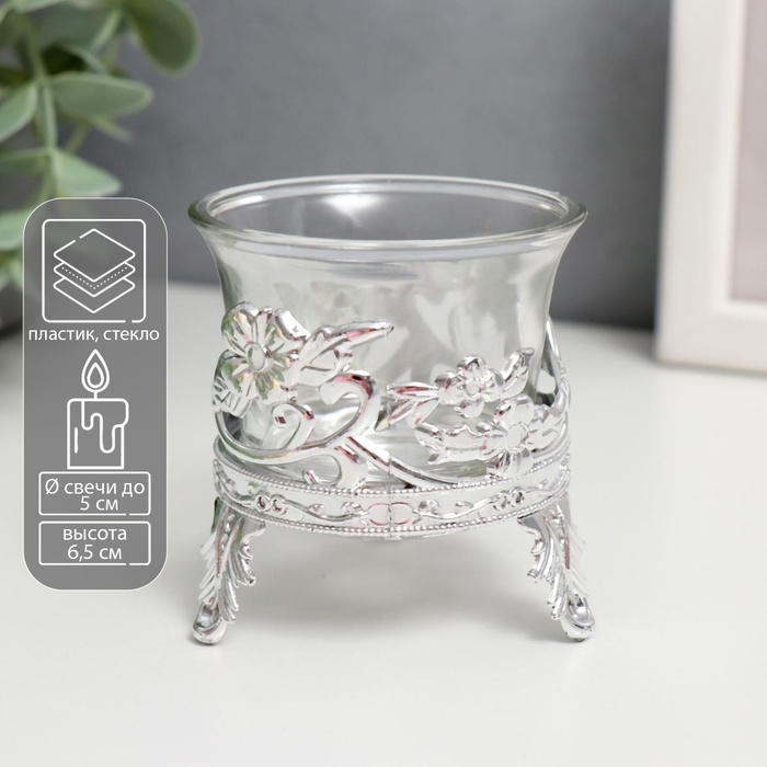 Подсвечник стекло, пластик на 1 свечу "Цветочек" серебро 6,5х6х6 см