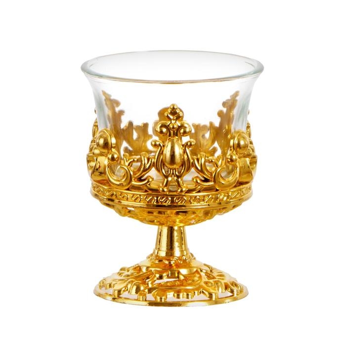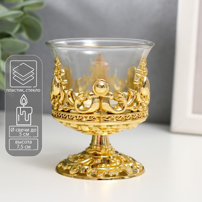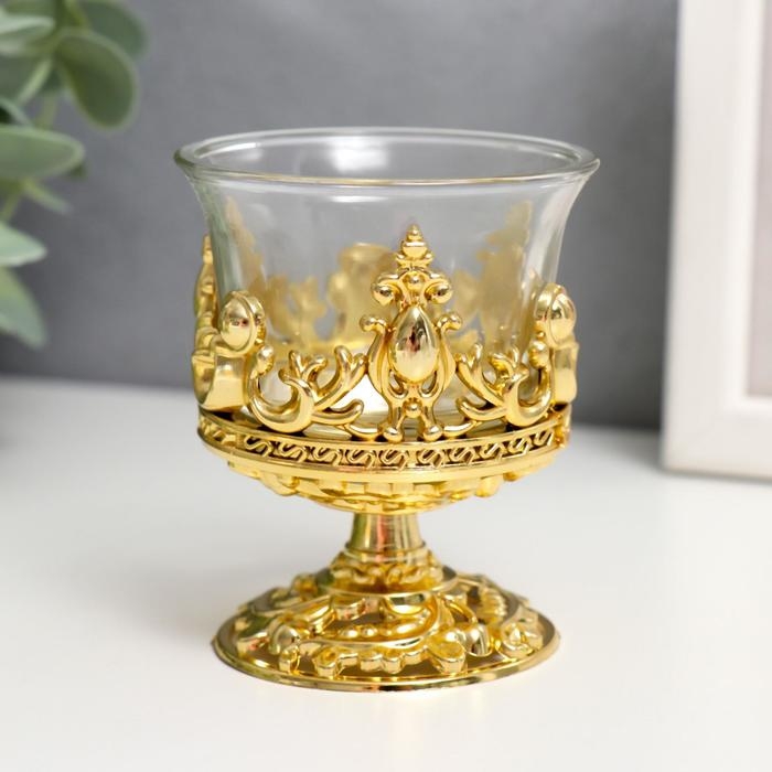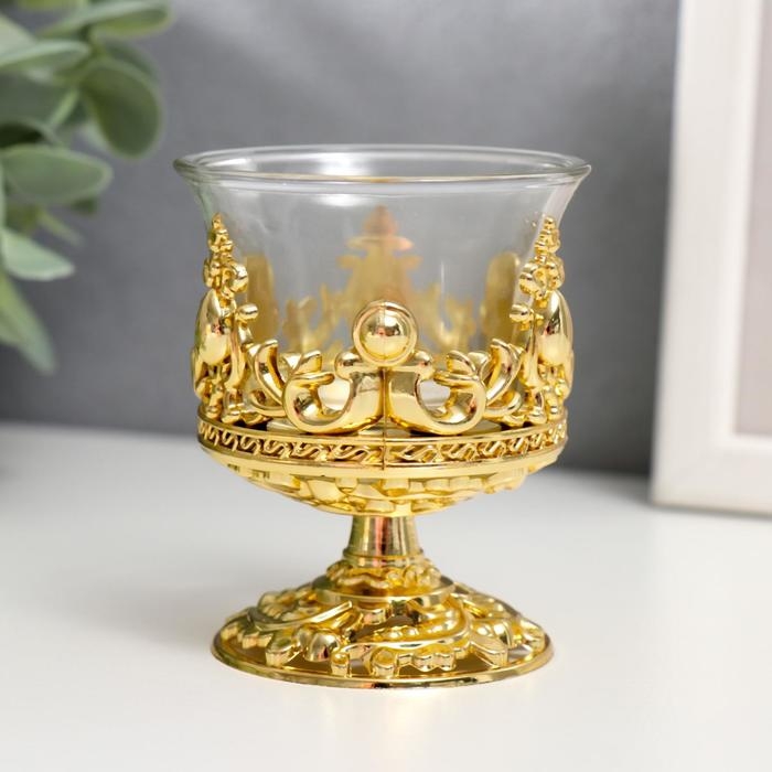 Подсвечник стекло, пластик на 1 свечу "Вьюнок" бокал на ножке золото 7,5х6х6 см