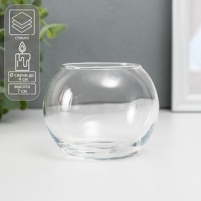 Подсвечник стекло на 1 свечу "Шар" прозрачный 7х9х9 см