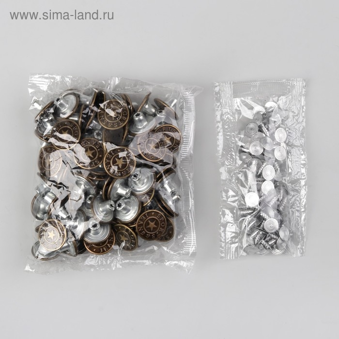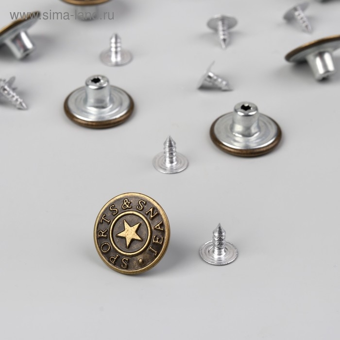 Набор джинсовых пуговиц «Classic Jeans», 17 мм, 6 шт, с установщиком, цвет антик