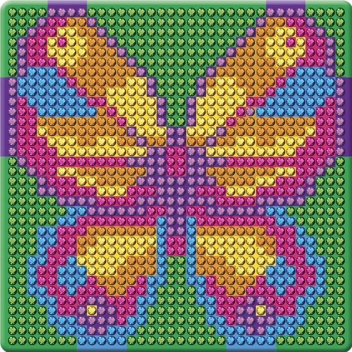 С помощью специального карандаша вам нужно разложить стразы по нарисованной схеме с обозначением необходимых цветов.