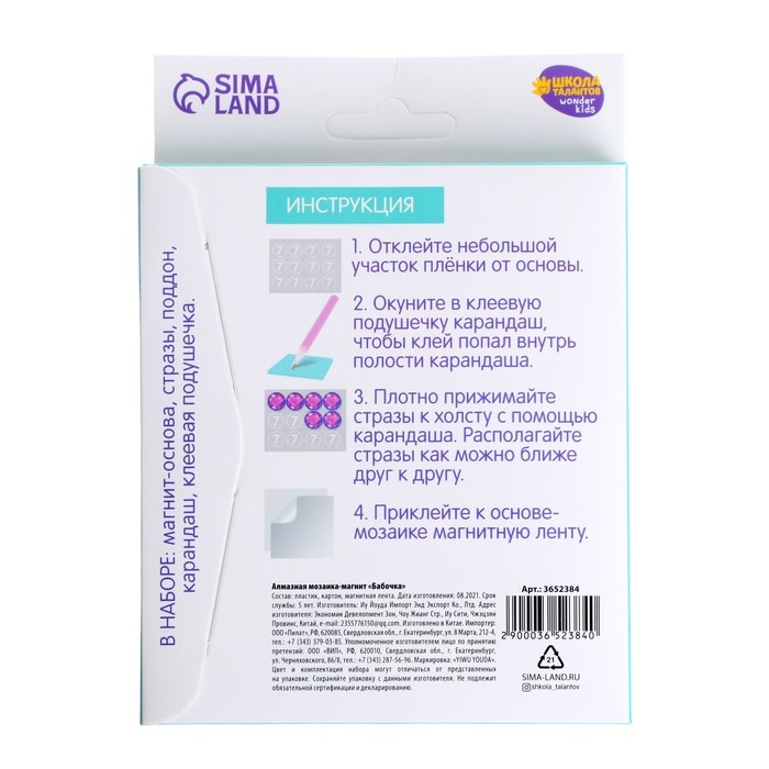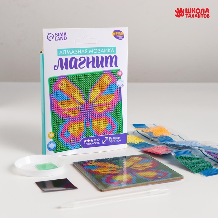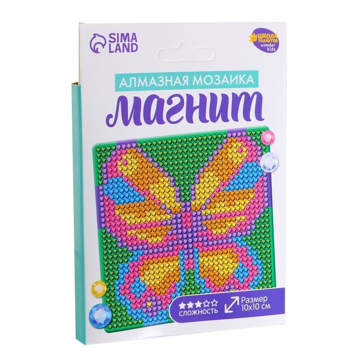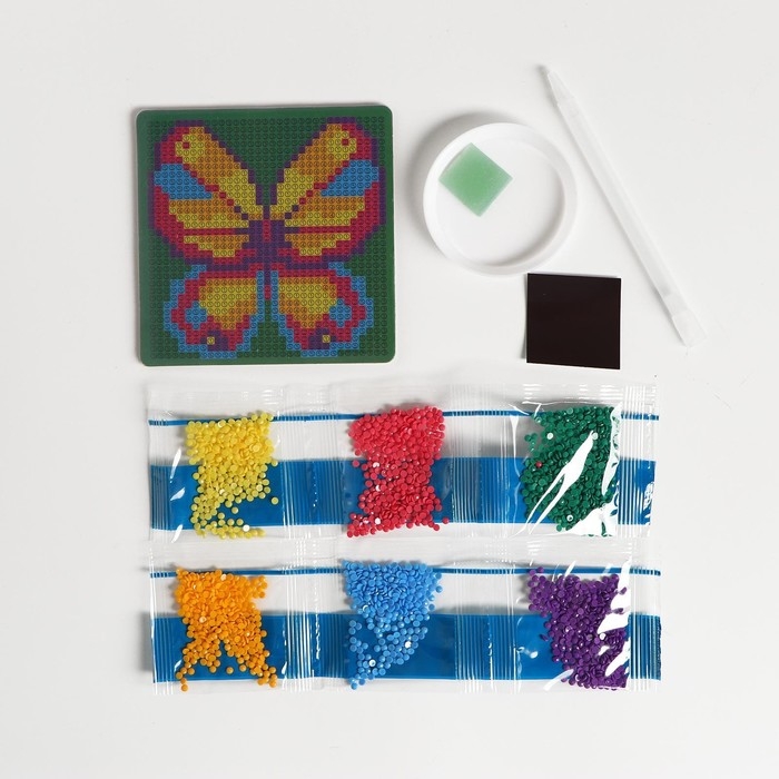 Алмазная мозаика на магните с полным заполнением для детей «Бабочка», 10 х 10 см