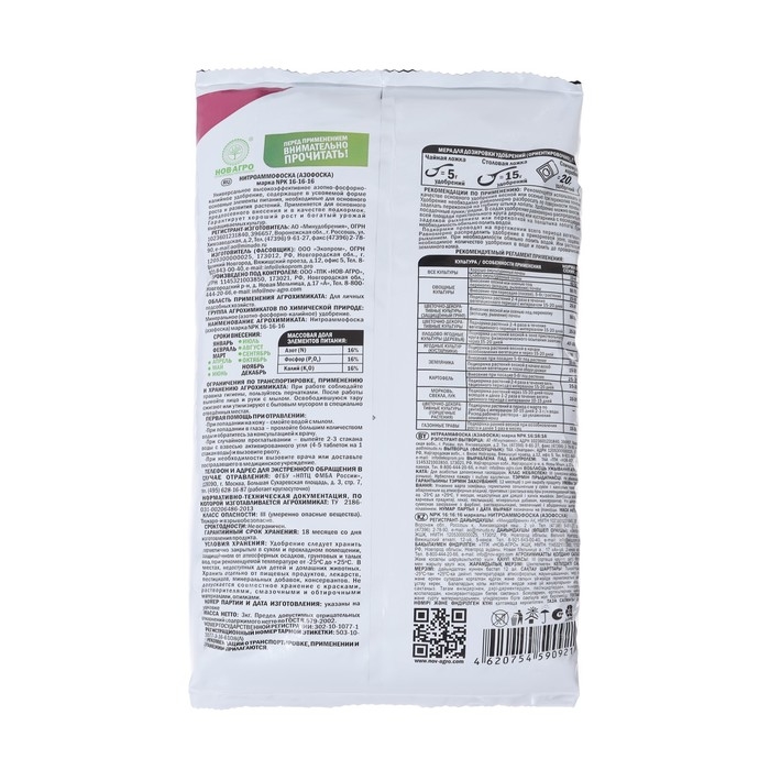 Состав: N-16%, P2O5 – 16%, K2O – 16%.