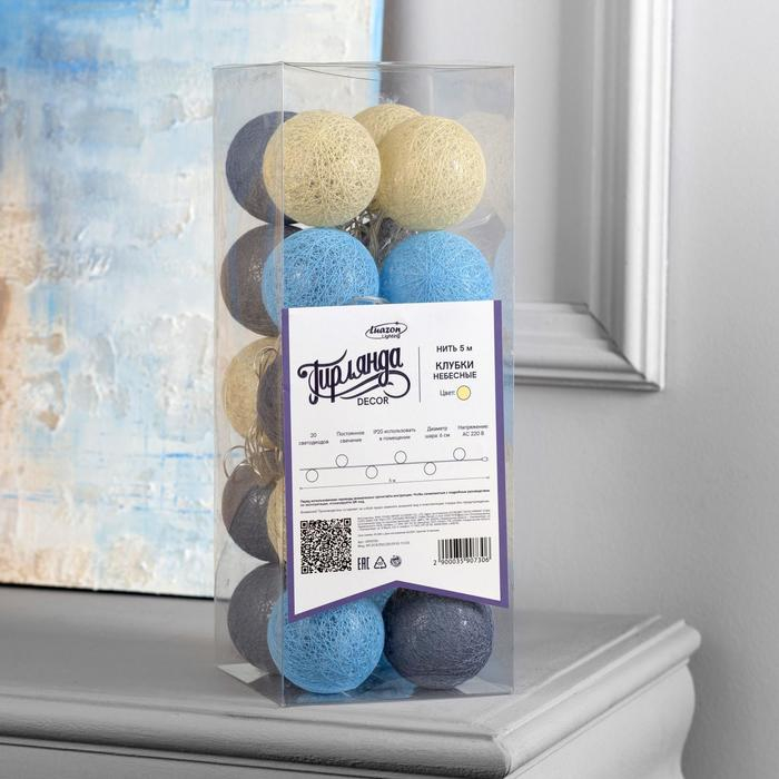Гирлянда «Нить» 5 м с насадками «Клубки небесные», IP20, прозрачная нить, 20 LED, свечение тёплое белое, 220 В