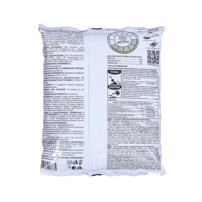 Высокоэффективное удобрение для основного внесения и подкормки картофеля в период вегетации. Обеспечивает сбалансированное питание растений, способствует хорошему плодоношению и приросту биомассы корнеплодов. Повышает устойчивость растений к заболеваниям и вредителям, а также к неблагоприятным воздействиям окружающей среды.