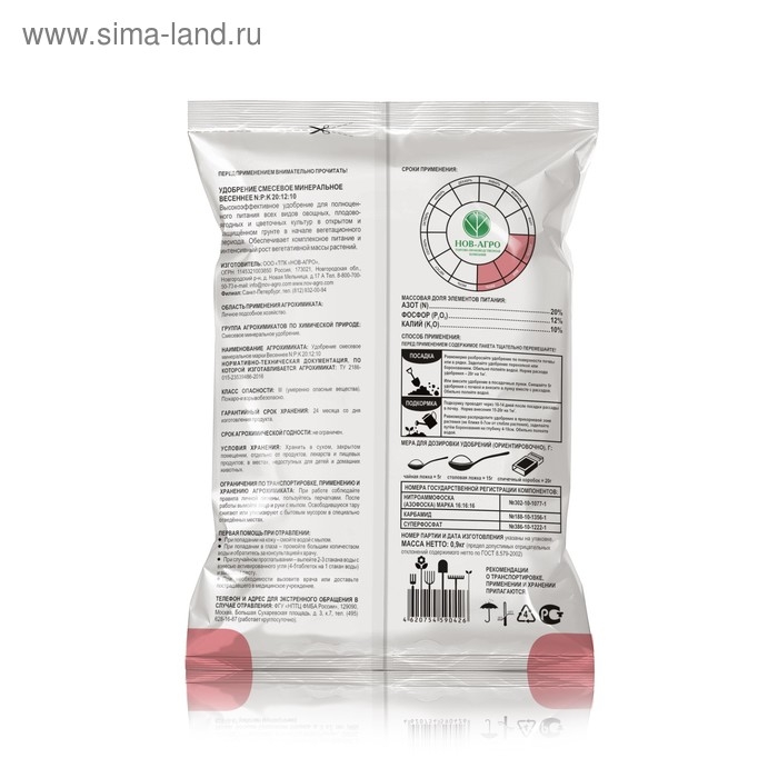 Содержит комплекс полезных элементов для здорового роста и развития растений.