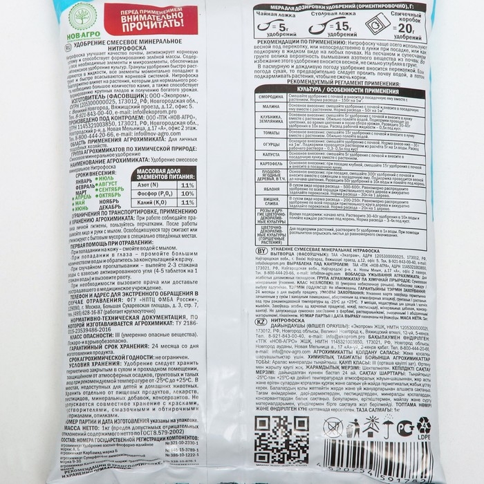 Удобрение минеральное Нитрофоска, 1 кг