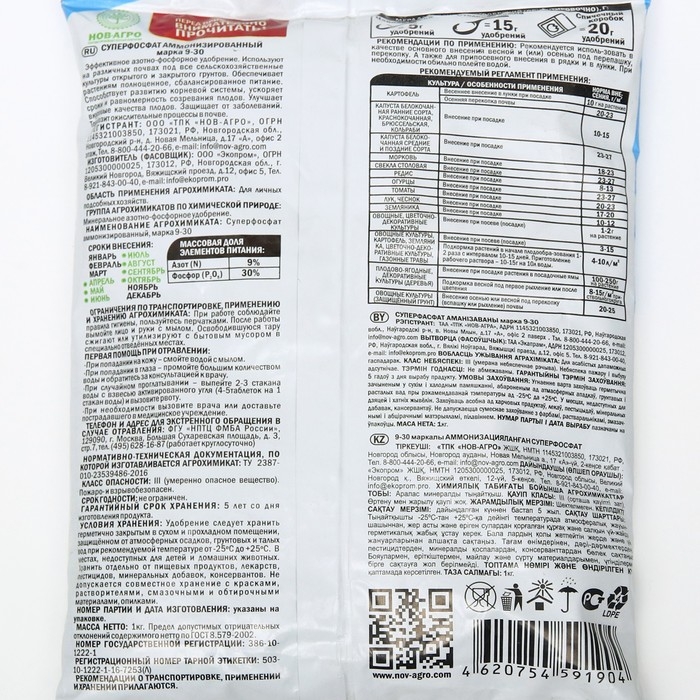 - Улучшает качество урожа;