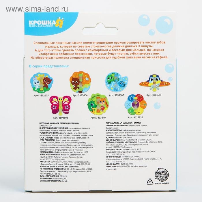 Песочные часы детские для чистки зубов на присоске «Черепашка», 3 минуты