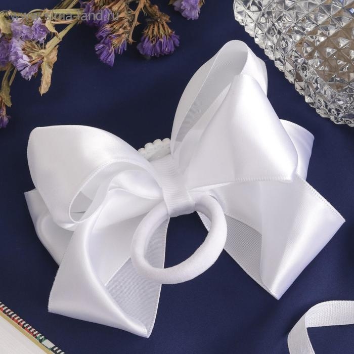 Резинка для волос "Школьница" бант двойной атлас цветок, 12 см, белый