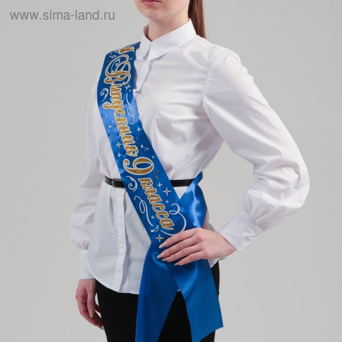 Лента "Выпускник 9 класс", атлас синий 3D