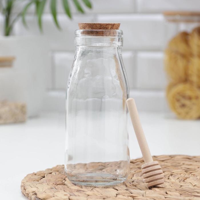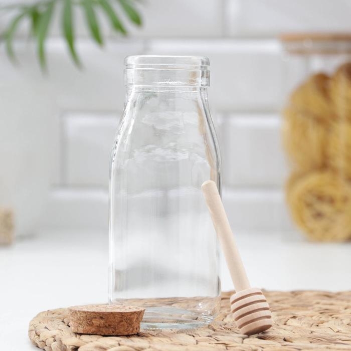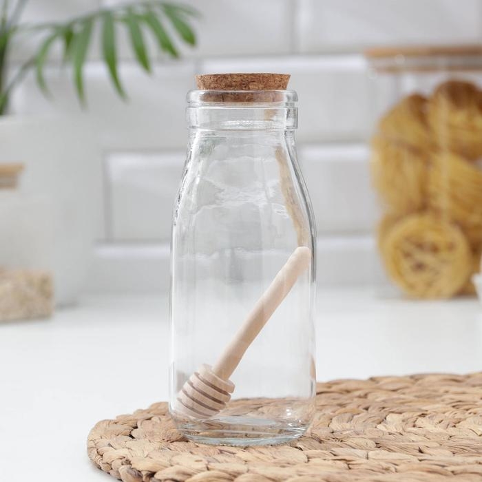 Ёмкость стеклянная для мёда и варенья с деревянной ложкой Доляна «Парфе», 250 мл, 7×14 см
